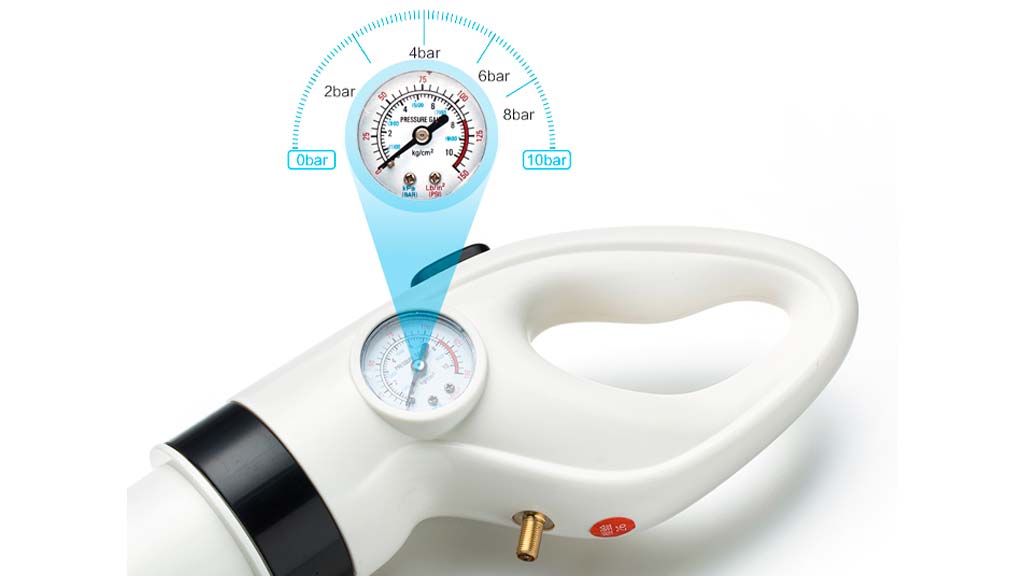 Bombee el mango para generar presión de aire, que se muestra en el barómetro visual.